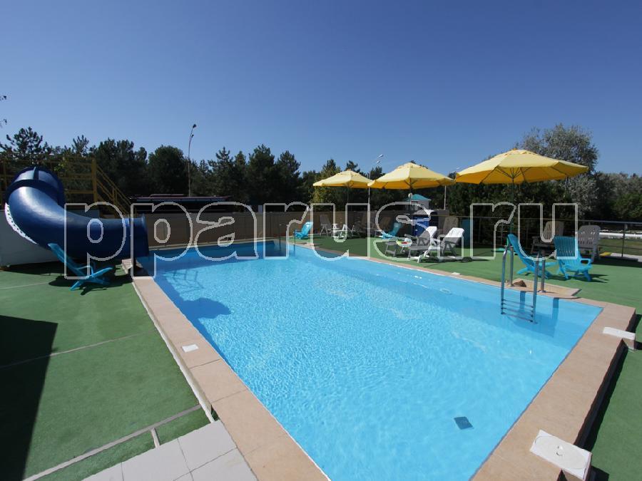 - два открытых бассейна (детский и взрослый) с водными горками